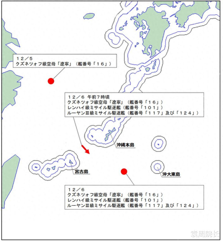 据日媒12月6号发布的消息,日本防卫省在6号晚间对外宣称,中国海军“辽宁号”航母于5号下午在距离钓鱼岛420公里海域航行。6号早上,辽宁舰同南昌舰、西宁舰、开封舰组成的编队,穿越宫古海峡进入太平洋。6号晚间,辽宁舰在距离琉球270公里的公海水域,进行了舰载机起降作业。日本防卫省表示,从辽宁舰起飞的舰载机于6号当天,先后两次对日本自卫队的战斗机实施了“间断性雷达照射”。